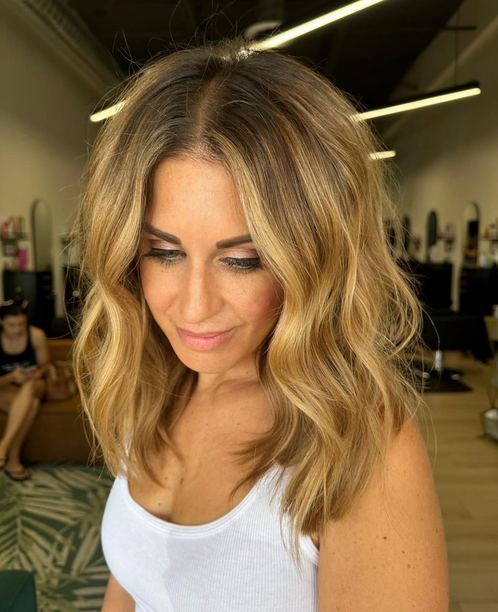 A root smudge is a hair color technique that seamlessly blends the natural root color into the rest of the hair, creating a soft and natural transition. This technique is typically performed after your highlighting or balayage service for those who want to extend the life of their hair color and achieve a low-maintenance, lived-in look.